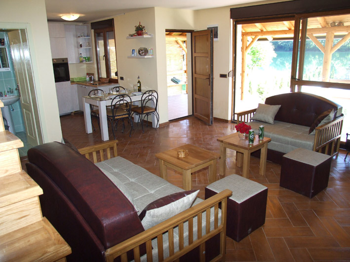 The swimming pool (4x9m) sits between the house and the Drinsko Lake. It is filled with spring water and has a filtering system. It also has hydro-massage jets and because of the inner pool lights it is suitable for night swimming.
